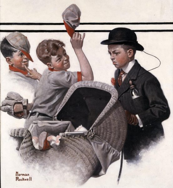 Norman Rockwell was born in New York City on February 3, 1894. The story goes that he always wanted to be an artist from the beginning, he attended art school in Manhattan and was commissioned to paint Christmas cards at the age of fifteen. At twenty-two he illustrated his first covers for the magazine Saturday Evening Post, which (fun fact), was founded by Benjamin Franklin’s associates in 1821.